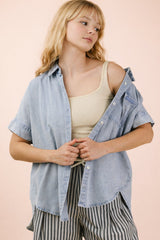Effortless style meets comfort in this light indigo button-down that's ready for anything. The classic short sleeves and crisp collar make it perfect for casual Fridays, weekend hangouts, or layering over your favorite tee. Denim's timeless appeal means you'll reach for this piece again and again—because looking put-together shouldn't feel like work.