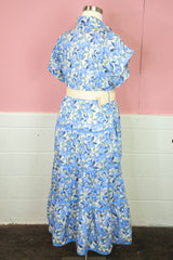Margot Floral Tiered Belted Dress, Blue | Plus Size