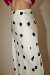 Zoey Satin Polka Dot Midi Skirt, White/Black