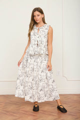 Elevate your wardrobe with the Florence Toile Pleated Midi Skirt in Black Multi. This sophisticated piece features a timeless floral toile pattern with elegant pleating that creates graceful movement and dimension. Crafted from 100% cotton with a polyester lining, it offers comfort and durability for everyday wear. The midi length provides versatile styling options—dress it up for special occasions or down for casual outings. Hand wash cold and line dry to preserve its quality. A refined essential that transitions seamlessly through seasons.
