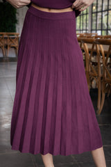 Introducing the Marielle Pleated Knit Midi Skirt! With its playful pleats, this skirt adds texture and movement to your outfit. The midi length pairs perfectly with any type of shoe, and the elastic waistband provides both comfort and style. Say goodbye to boring skirts and hello to Marielle!