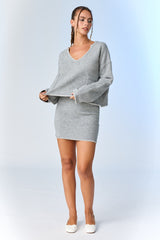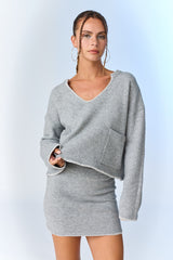 Myra Knit Blanket Stitch Skirt, Grey