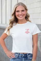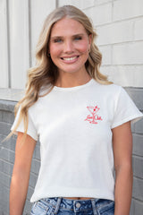 Get ready for love and adventure with the Love Club Daytrip Tee in Sea Salt by Z Supply. This graphic tee features a crew neckline and short sleeves, perfect for a daytrip with friends or a casual day out. Show off your playful side with this quirky and fun tee!