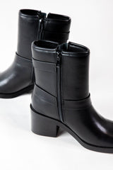 Addax Buckle Detail Moto Boot, Black PU