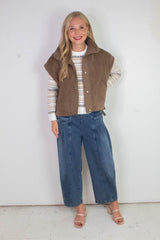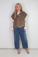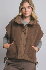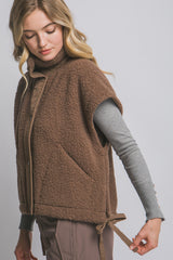 Stay cozy and stylish with the Addison Button Front Faux Fur Vest in brown. Featuring a snug mock neck and playful side ties, this vest adds a fun twist to your layering game. Plus, side pockets offer a handy spot to tuck your hands or small essentials. Embrace warmth without sacrificing flair in this irresistibly soft, button-front favorite!