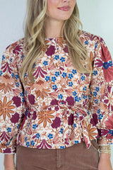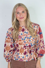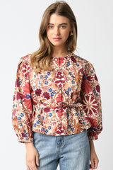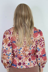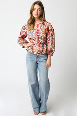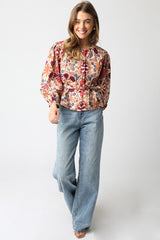 Adele Printed Button Down Blouse, Cream Rust