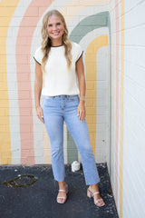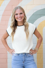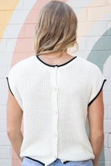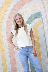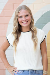 Amelia Contrast Trim Sweater Top, Cream