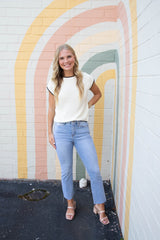 The Amelia Contrast Trim Sweater Top in cream brings a playful edge with its striking black trim. Featuring short sleeves and a comfy round neck, it’s perfect for adding a fun twist to your everyday look while keeping things light and easygoing!
