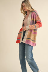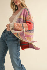 Frankie Oversized Color Block Cardigan, Fuchsia Mustard Multi