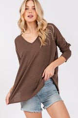 Cozy up in the Gabrielle Round Hem Thermal Top in Dark Mocha! Featuring a flattering V-neck and long sleeves, this thermal style is perfect for layering on chilly days or lounging in comfort. The rounded hem adds a fun twist to your casual look while keeping you warm and snug!