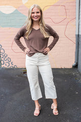 Gabrielle Round Hem Thermal Top, Dark Mocha