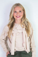 Gloria Scarf Detail Sweater, Light Beige