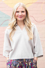 Elevate your everyday style with the Jessica Collared Solid Knit Top in Stone. Featuring a playful boxy fit, three-quarter drop sleeves, and a flattering V-neck, this ribbed knit top adds effortless charm to any outfit. The classic collar blends polished vibes with cozy comfort, making it perfect for days when you want to look put-together without trying too hard!
