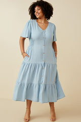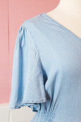 Josie Side Smocked Midi Dress, Light Denim | Plus Size