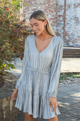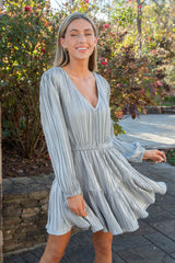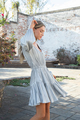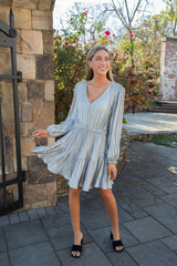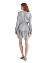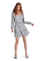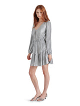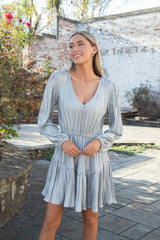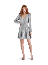 Unleash your playful side in the Kara Dress by Steve Madden! This gunmetal mini dress boasts a flattering V-neck, elastic waist, tiered design, and long sleeves for a fun and flirty look. Perfect for any occasion, it's the ultimate in stylish comfort!