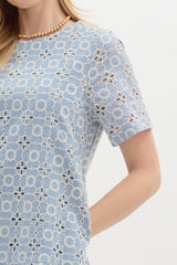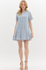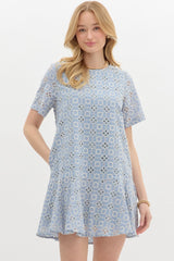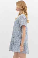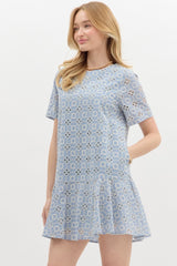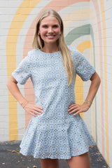 Add a touch of playfulness to your wardrobe with the Kaylani Peplum Hem Embroidered Dress. Featuring a round neck and short sleeves, this dress also has a unique peplum hem and intricate embroidered details. The back button closure and side pockets make it both stylish and functional. Perfect for any occasion!