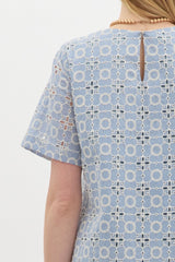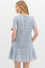 Kaylani Peplum Hem Embroidered Dress, Blue