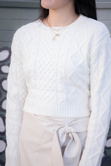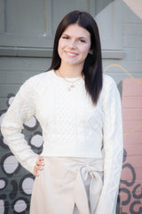 Kessie Cable Knit Sweater, Whisper White | Steve Madden