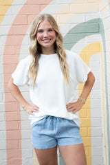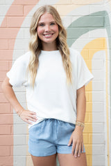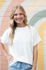Lila Dolman Sleeve Ribbed Top, Ivory