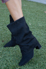 Get in tune with style with the Mozart Foldover Mid Calf Boot! Made of suede faux leather and featuring a foldover style, pointed toe, and trendy heel, these boots hit all the right notes. Perfect for any occasion, you'll be singing their praises all day long!