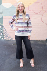 Bring a splash of fun to your wardrobe with the Shinza Crewneck Sweater, featuring bold stripes in navy blue, brown, and magenta. The cozy crew neckline and long sleeves make it the perfect pick for cooler days, while the lively pattern adds a playful twist to your casual look. Easy to pair and easy to love, this sweater keeps comfort and style in perfect harmony!